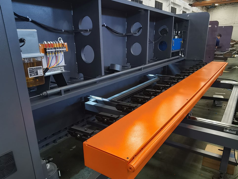 ● 高精度后擋料,交流伺服馬達(dá)驅(qū)動,高速滾珠絲桿,滾珠導(dǎo)軌